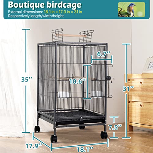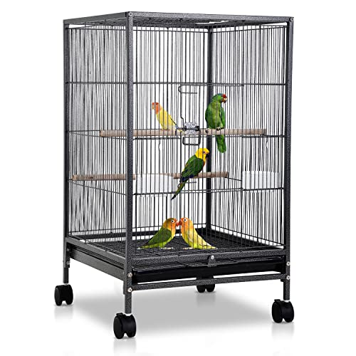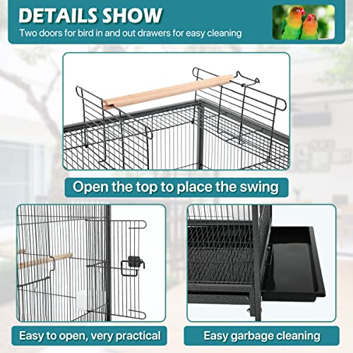 【BIRD CAGE WITH WHEELS】4 robust swivel casters mobility and stability, simple glide non-marking casters permit for conveniently easy motion to and from any room. The lockable design might repair the parakeet cage in a particular space which makes the cage extra secure and extra secure.