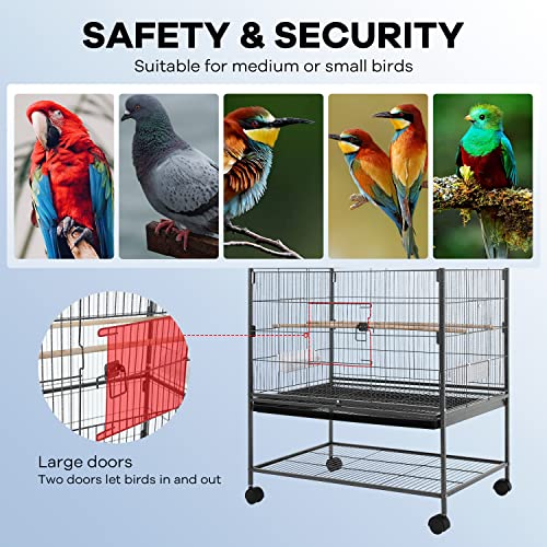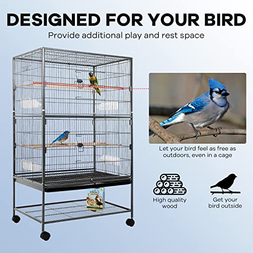 【Free Equipment】Parrot cage with 4 polished wood perches present enough place on your birds to relaxation and stand. 4 plastic feeders can serve your pets with water and completely different seeds.