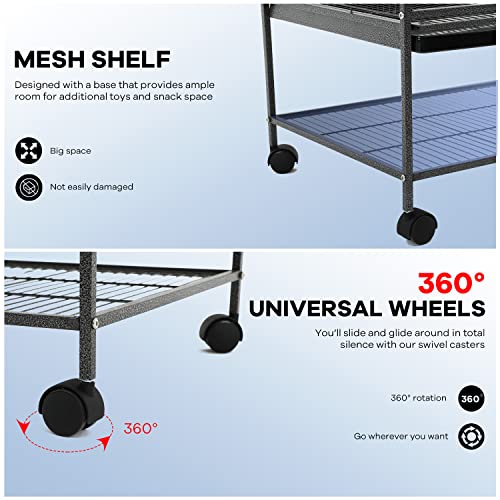 【Handy Transferring】Resulting from its further giant dimension, it could take somewhat effort to maneuver this hen cage. Nonetheless, our parrot cage sits on 4 common wheels on the backside, you’ll be able to transfer in any path at will. This design has completely solved this drawback.