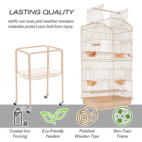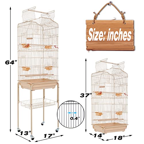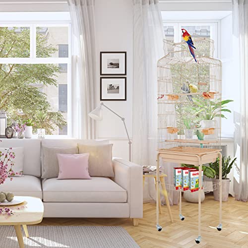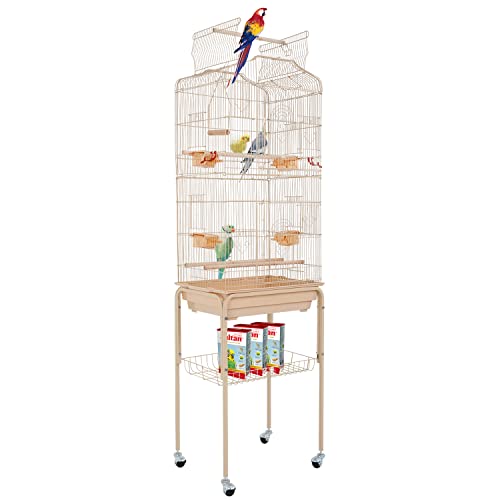 HCY Bird Cage Parakeet Cage 64 inch Open Top Standing Parrot Cage Accessories with Rolling Stand for Medium Small…