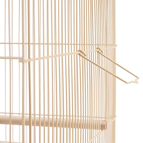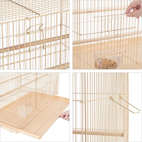 SPECIFICATIONS: Coloration: almond; Materials: Iron, plastic, wooden; Cage dimension: 30.5×18.5×18″ (LxWxH); Cage bar area: 0.4″