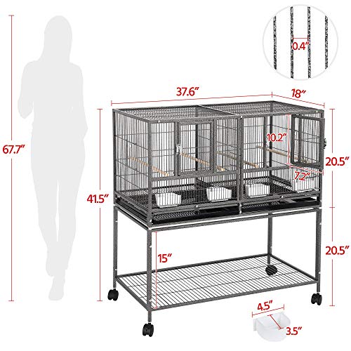 Excellent for small birds: This two divided breeder cages measure 37.6’’/95.5cm lengthy, 18’’/45.5cm huge, and 41.5’’/105cm excessive with 0.4’’/1cm wire spacing every, which is ideal for housing 3-4 small birds akin to lovebirds, canaries, finches, parakeets, cockatiels, Caiques, Quaker parrots, inexperienced cheeks, budgies.
