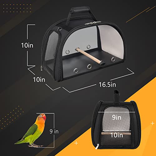 【Chook Service Measurement】The dimensions of the black chook carriers is 16.5*10*10inch, Matches for birds with a top beneath 9″ (the vertical distance from the chook’s claw to the top).appropriate for parakeet, mini macaws, small cockatoos, lories, budgie and different comparable dimension parrots.