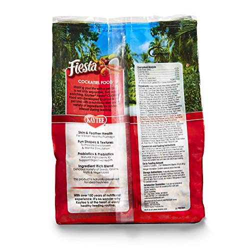 Kaytee Fiesta Cockatiel meals is a nutritionally fortified gourmand weight-reduction plan product of a premium mix of fruits, greens, seeds and grains providing most selection, enjoyable and vitamin for pet birds. Fiesta comprises prebiotics and probiotics to help digestive well being and is formulated along with your chook species in thoughts. Kaytee understands that sharing your life with a pet chook is just not solely pleasurable however very enriching. Kaytee exhibits our love by making certain we offer your pet chook with one of the best vitamin for a protracted and wholesome life. With over 150 years of dietary expertise, it is no surprise why Kaytee is on the coronary heart of each wholesome feeding routine.