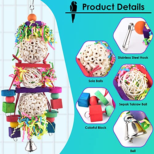 Protected and Non-toxic: Two Sola balls are constituted of the roots of pure Sola vegetation, one sepak takraw is manufactured from rattan, and colourful shred paper is dyed with environmentally pleasant edible dyes, gentle and delicate, no glue, wires or plastics, pet birds can chew and play 100% safely.