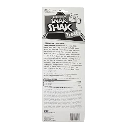 Made with alfalfa and golden honey, the lifelike wooden look Snak Shak log has a tough texture that promotes small animals’ pure chewing intuition.