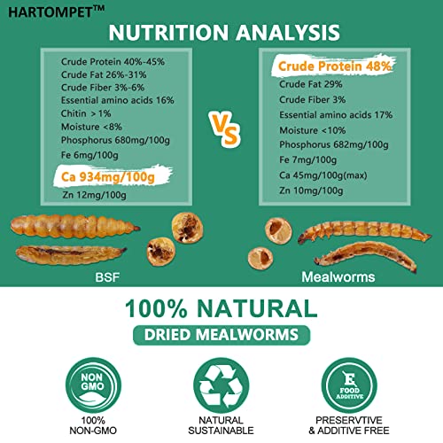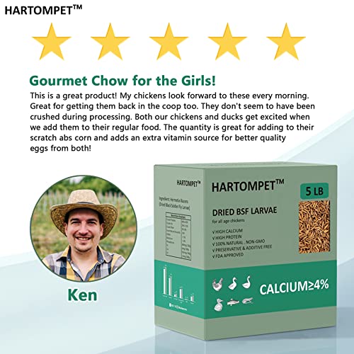HEALTH FEATHER & STRONGER EGGSHELL – Excessive in crude protein & 85x extra calcium than mealworms for chickens, hartompet bsf larvae promotes more healthy feather manufacturing & stronger eggshells, and accelerates molting to permit laying hens to regain regular ranges of power and egg output. Important protein when molting!