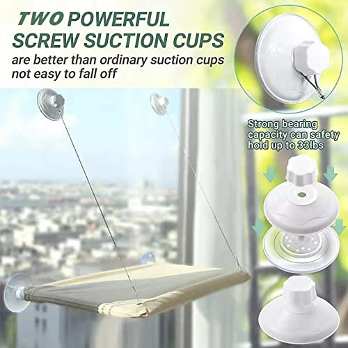 ★ INNOVATIVE SUCTION CUPS — Our cat window hammocks use a brand new technology of suction cups. While you set up the highest two suckers, you tighten them clockwise (that is very important)! Be sure that the suction cup is firmly connected to the window. Thanks to your buy!