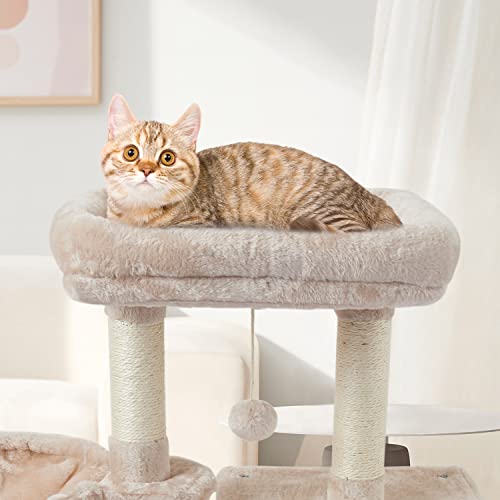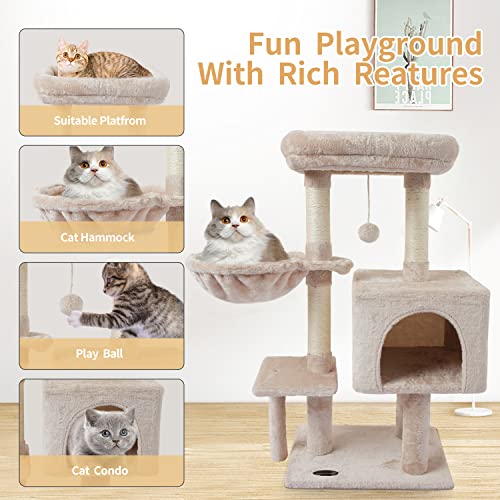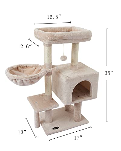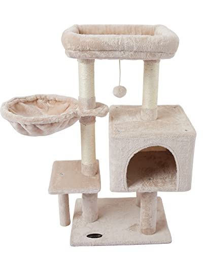 SAFE AND COMFORTABLE MATERIAL:Prime quality fake fur may be very comfy and tender , pure sisal sctraching publish for cat scratching ,normal protected board.Mushy hammock give the cat a smoothy feeling.