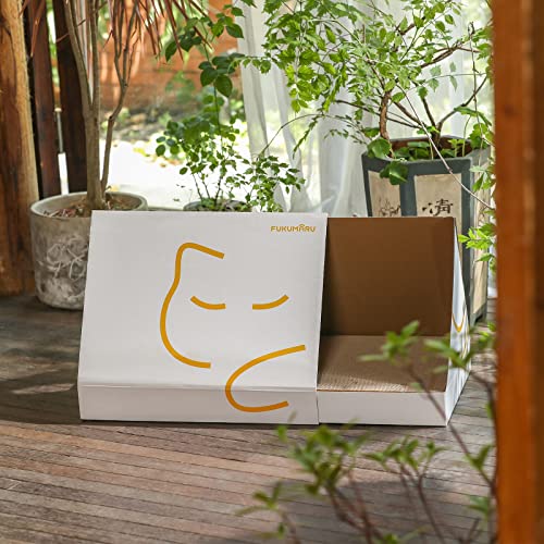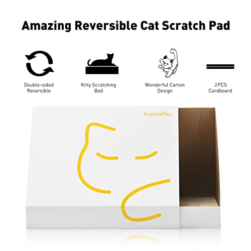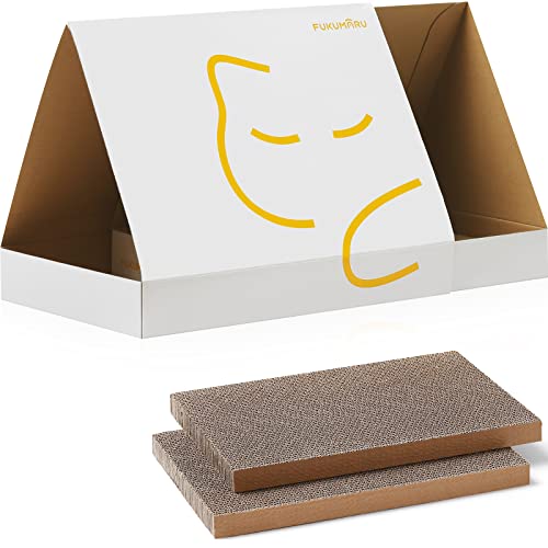 FUKUMARU Cat Scratcher with Box, 2 PCS Reversible Cat Scratch Pad, Corrugated Scratching Bed for Indoor Kitty (Cat…