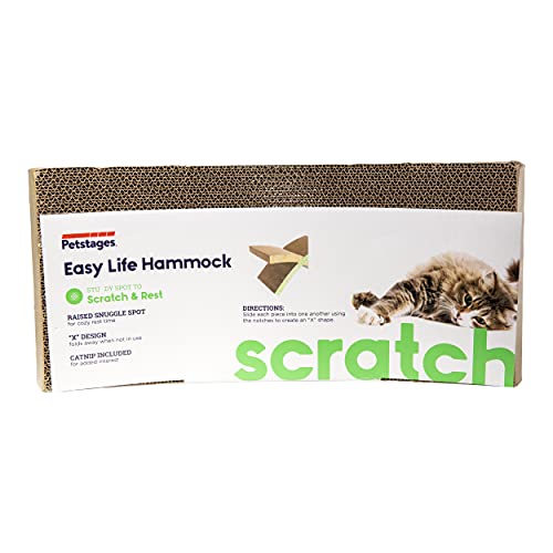 2-IN-1 SCRATCH & NAP: Petstages Simple Life Hammock Cat Scratcher is produced from sturdy corrugated cardboard that gives a protected base for lounging kitties to relaxation and hold their claws trimmed.