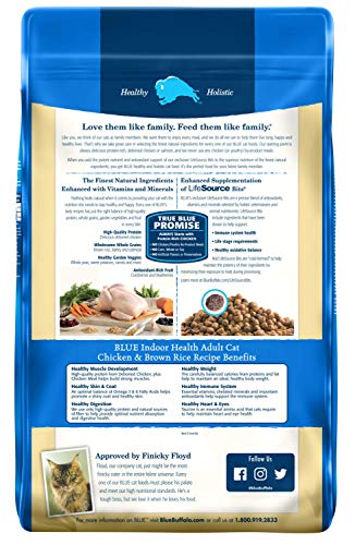 FOR INDOOR CATS: Holistically formulated to support indoor cats, BLUE Indoor Health Cat Food provides balanced calories from protein and fat to help maintain a healthy body weight; It contains omega 3 & 6 fatty acids to promote skin and coat health