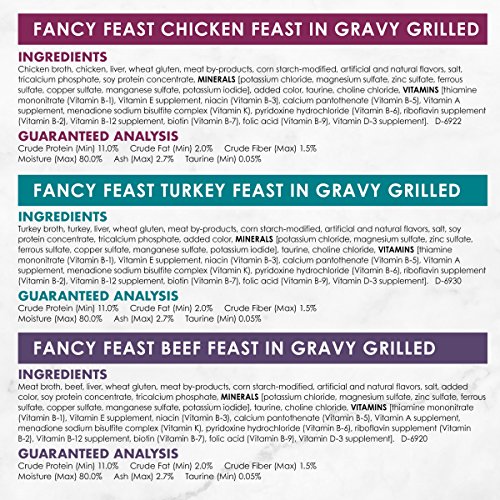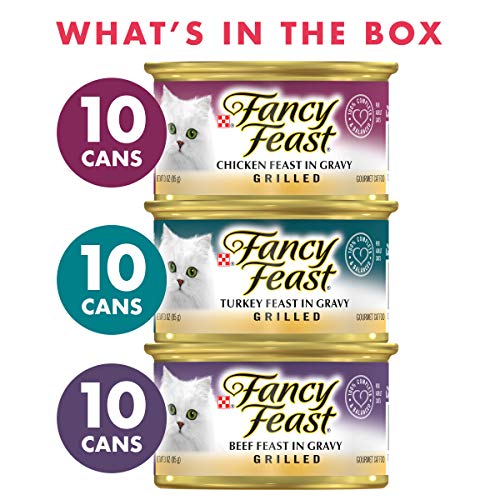 Thirty (30) 3 oz. Cans – Purina Fancy Feast Gravy Moist Cat Meals Selection Pack, Poultry & Beef Grilled Assortment