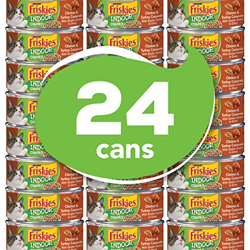 Twenty-4 (24) 5.5 Oz. Can – Purina Friskies Indoor Chunky Hen & Turkey Casserole With Backyard Greens In Gravy Moist Cat Meals