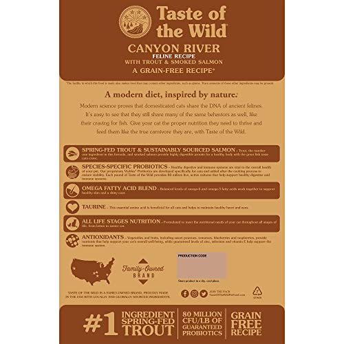 Watch your cat play and you’ll quickly understand that your purring pal nonetheless has lots of the identical behaviors of a wild cat. Years of domestication and glorious care have turned a short-lived potential foe to a long-lived companion. Feed your cat just like the true carnivore they’re with Style of the Wild’s Canyon River Feline Method with Trout & Smoked Salmon. A grain-free system with candy potatoes and potatoes supplies extremely digestible power on your energetic cat. Made with trout and smoked salmon, this system presents nice style and high quality fish protein. For at present’s wholesome cat, this system is supplemented with greens and fruits, offering antioxidants to assist a wholesome immune system and general good well being. Your cat craves tastes from their wild previous. Go forward and provides them one.