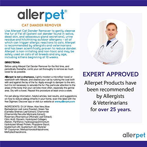Veterinarian & Allergist Really useful – College research have proven that cat dander masses in properties have been lowered by 50% with weekly use of Allerpet. The answer is well known & really helpful by vets and allergists nationwide as an efficient system for enormously decreasing or eliminating cat allergic reactions within the dwelling. Specialists suggest utilizing Allerpet in your pet as soon as per week. For extra extreme allergic reactions or excessive dander-producing breeds, use Allerpet each 3-4 days.