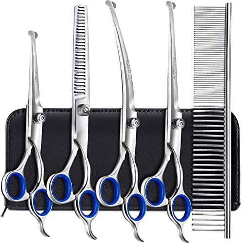 【6 in 1 Canine Grooming Scissors Set】The canine grooming scissors set comes with 2 straight scissors, 1 thinning scissor, 1 curved scissor, 1 grooming comb and 1 storage case
