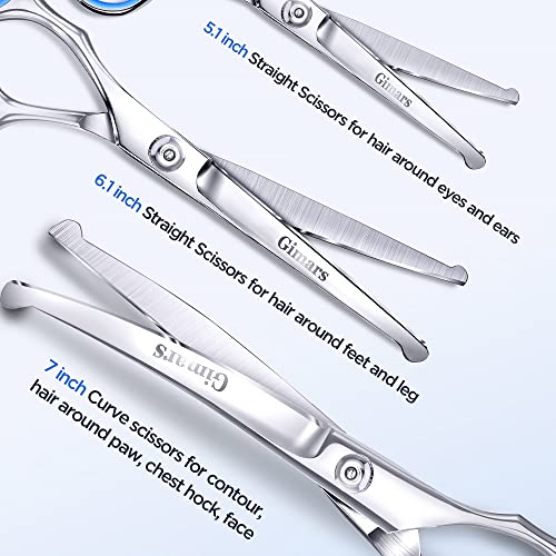 Gimars Professional 4CR Stainless Steel Safety Round Tip 6 in 1 Dog Scissors for Grooming, Heavy Duty Titanium Coated…