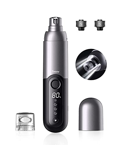 Toozey Dog Nail Grinder with 4 LED Lights, Professional 3-Speed Powerful Electric Dog Nail Trimmer with 2 Grinding…