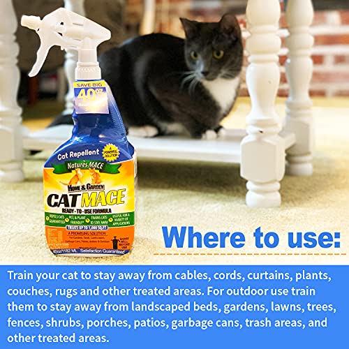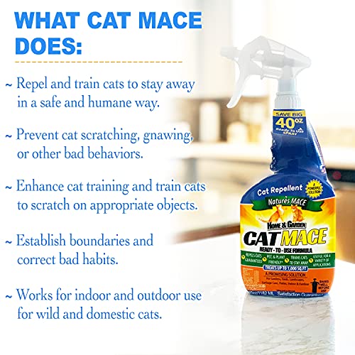 Cat mace 40oz ready-to-use, treats 1, 000 sq. Ft. Nature’s mace cat repellent know-how works greatest – retaining your pets, your neighbors’ pets, & strays, away from handled areas. Defend your garden, bushes flower beds, shrubs, trash containers, & backyard areas. Practice undesirable pets to keep away from protected areas.