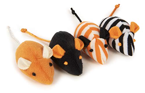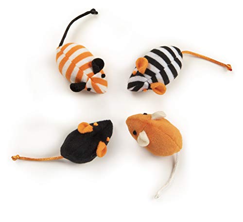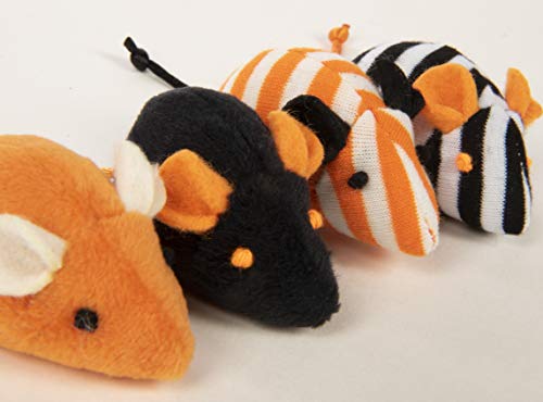 SmartyKat Halloween Skitter Mice Catnip Cat Toys – Orange/Black/White, 4 Count