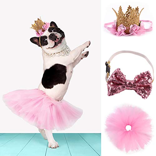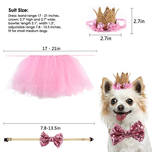 Ayunjia 3pcs/Set Dog Dress Puppy Birthday Party Supplies Tutu Skirt Bowtie Crown Hat Pet Dog Suit for Wedding Dress…