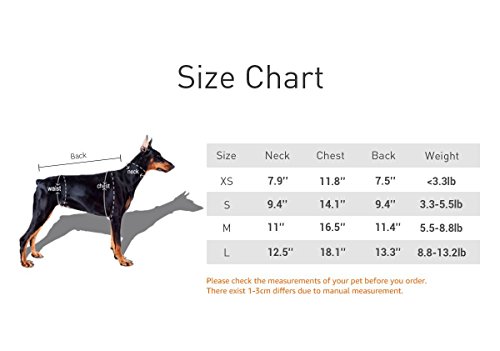 Measurement Chart: Measurement XS – Neck: 7.9” Chest: 11.8” Again: 7.5”