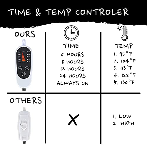 【SMART SWITCH】- The pet heating pad has 5 timer ranges(4h/8h/12h/24h/steady) and 5 ranges of adjustable temperature (from 68℉ to 122℉) as your pets want, give your pets a heat winter
