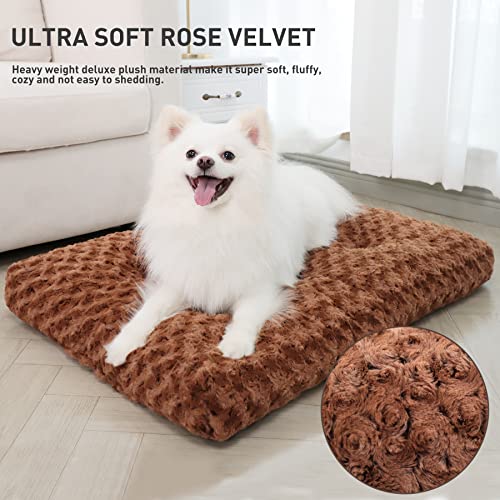 Washable Dog Bed Deluxe Plush Dog Crate Beds Fulffy Comfy Kennel Pad Anti-Slip Pet Sleeping Mat for Large, Jumbo, Medium…