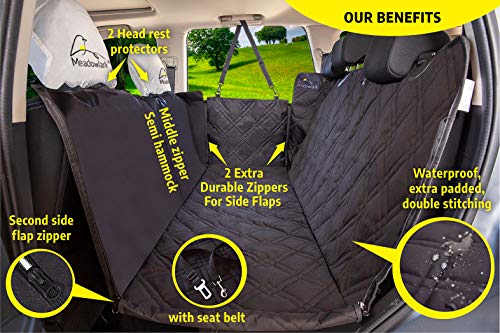 ✅ VEHICLE PROTECTION: Everyone knows how necessary it’s to maintain our vehicles clear.This canine automobile seat cowl for the again seat protects your automobile from filth & undesirable spills and your headrests from scratches. It additionally has sturdy zippered facet flaps to guard your doorways from getting ruined.