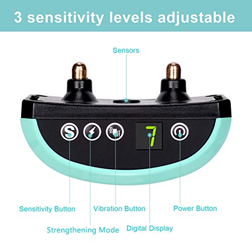 No False Set off & Distinctive Take a look at Mode -The shock bark collar has a strict false barking detection that may intelligently acknowledge your canine’s distinctive barking and filter out different sounds. When the sensitivity stage is adjusted to 0, the receiver enters the check mode, and you may check by blowing or shouting on the sensor microphone on the again of the receiver.