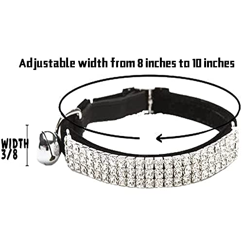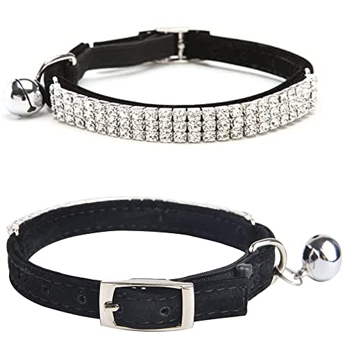 CHUKCHI Soft Velvet Safe Cat Adjustable Collar Bling Diamante with Bells,11 inch for Small Dogs and Cats (Black)