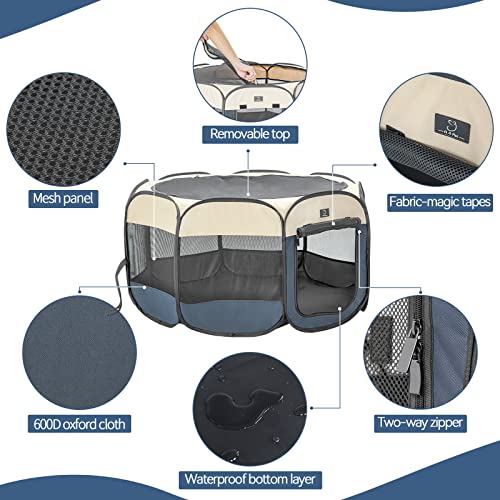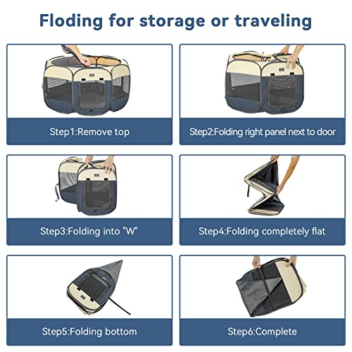 [Convenient Cleaning]: The zippered high of this canine play pen will be eliminated for straightforward cleansing. In addition to, the underside is water resistant so liquids will not leak by way of to make a large number of your room. Door will be opened by two-way zipper and rolled up and stuck to stop pets from biting the door.