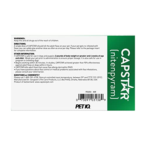 FAST-ACTING FLEA TREATMENT: CAPSTAR (nitenpyram) starts killing adult fleas in just 30 minutes.