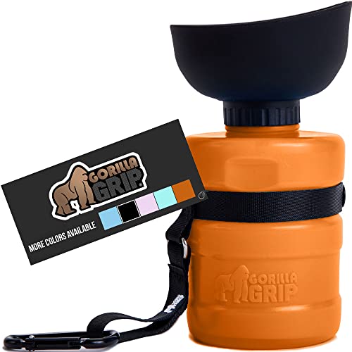 Gorilla Grip Leak Proof Portable Dog Water Bottle, Multifunction Design with Bowl Cap, Food Grade Silicone, Dogs Drink…