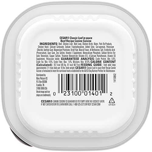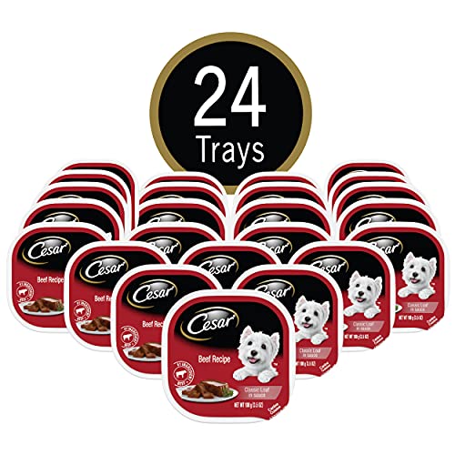 Contains twenty-four (24) 3.5 oz. trays of CESAR Wet Dog Food Classic Loaf in Sauce Beef Recipe