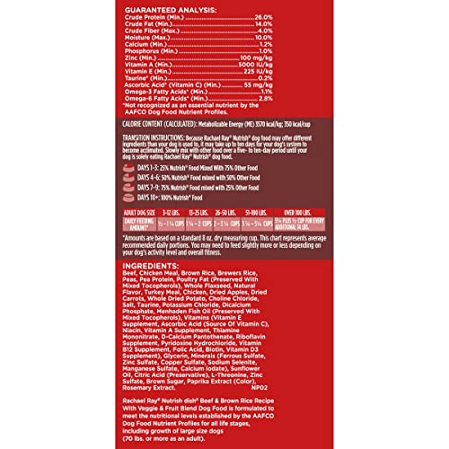 Rachael Ray Nutrish Dish Premium Natural Dry Dog Food, Beef & Brown Rice Recipe with Veggies, Fruit & Chicken, 3.75…