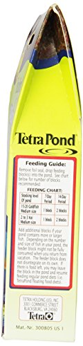 USAGE; 1 gel block feeds 15 to twenty medium goldfish or 2 to three medium koi for as much as 7 days; use further blocks for two week interval (see product label for particulars).