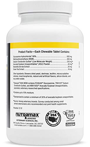 Dasuquin is the primary veterinarian really useful joint well being model that goes past customary glucosamine dietary supplements. Dasuquin combines NMX1000 ASU(avocado/soybean unsaponifiables) and decaffeinated tea with Glucosamine and sodium chondroitin sulfate to supply a complete joint well being formulation. MSM (methylsulfonylmethane), a supply of sulfur used to help cartilage, provides to the multi-prong strategy to joint well being help. Analysis has proven that its particular glucosamine hydrochloride and low molecular weight chondroitin sulfate have demonstrated synergy in stimulating cartilage matrix manufacturing, whereas ASU additionally acts synergistically with glucosamine and chondroitin sulfate. Dasuquin with MSM chewable tablets present a tasty and handy possibility for supporting your canine’s joint well being!” Supply: Amongst veterinary manufacturers. Survey carried out amongst small animal veterinarians who really useful oral joint well being dietary supplements manufacturers in US.