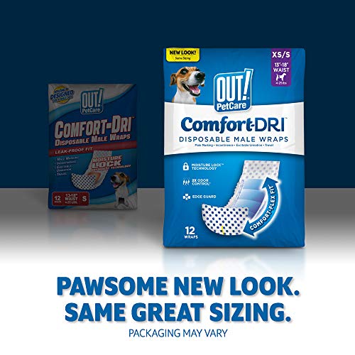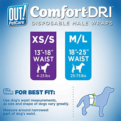 DESIGNED FOR MALE DOGS – Hold your canine snug and dry with XS/Small OUT. PetCare Disposable Male Wraps. Designed specifically to suit male canines with a 13-18-inch waist.