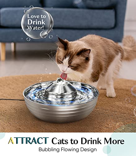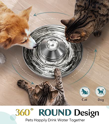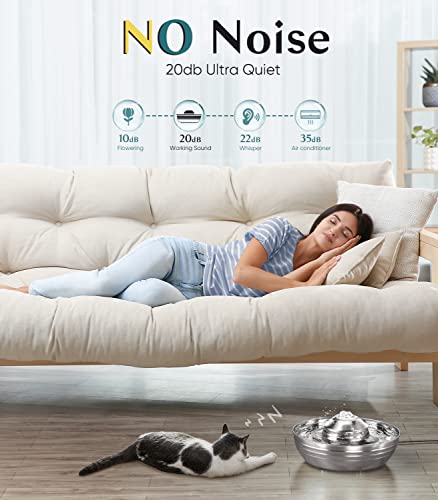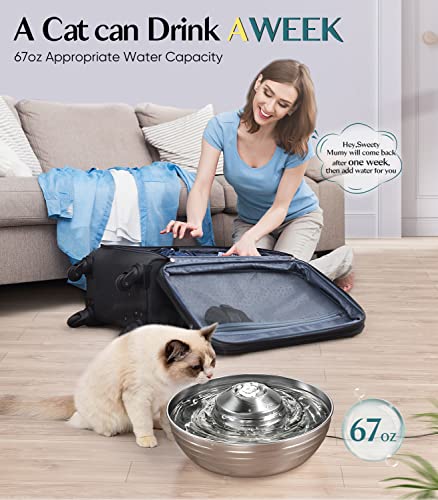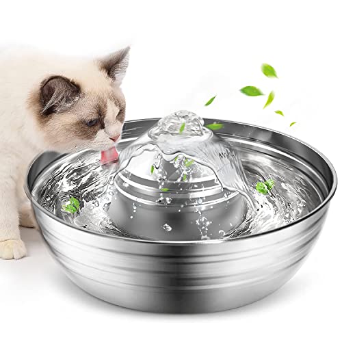 oneisall Cat Water Fountain Stainless Steel,2L/67oz Quiet Cat Fountain Water Bowl for Multiple Pets,Low Noise Water…