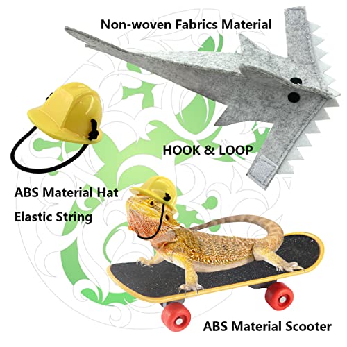 【Measurement】The lizard helmet hat is 0.8″*1.4″*1.6″. The mini scooter is 5.1″*1.6″. The bearded dragon shark costume is 8.3″ in size, head girth is 5.1″. The lizard tank equipment are additionally appropriate for gecko, chameleon, iguana and hamster.