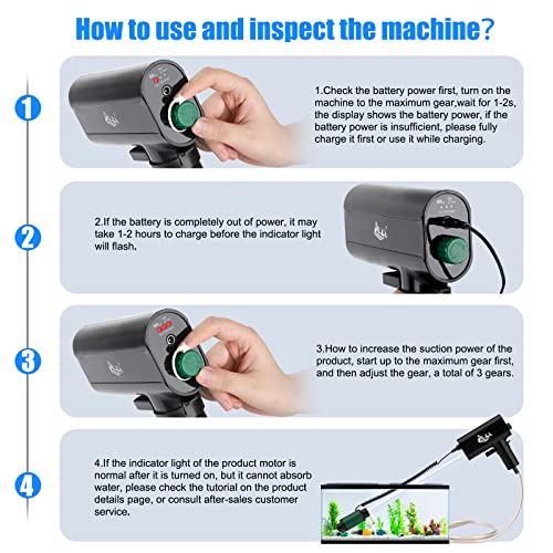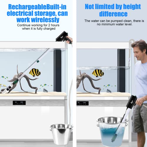 ⚡【Aquarium Gravel Vacuum Works Two Methods By Plug In Or Rechargeable Use】Modern patented design water changer,3 energy provide modes will be chosen, growing the comfort of day by day use:①It is utilized by plugged in ②After absolutely charged, disconnect the adapter and use it, and it may be moved freely with out being restricted by the size of the twine and place.③Use whereas charging,whereas utilizing, the battery will retailer electrical energy on the similar time.Please absolutely cost earlier than use.