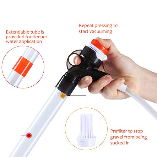 WATER CHANGING – This aquarium water changer could be very simple to make use of. By merely urgent repeatedly the air bladder on the prime of the deal with, water will stream out from the aquarium