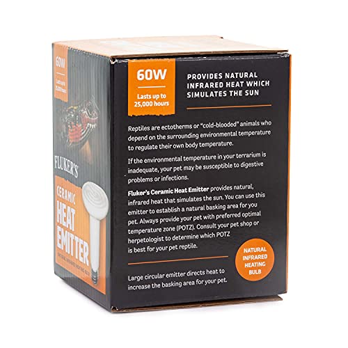 Heat emitters radiate intense infrared heat, but emit no light. The perfect 24-hour heat source for your tropical or desert reptile. Ceramic heat emitters can be used to establish an appropriate environment temperature range for reptiles. Designed for use with all Fluker Clamp-Lamps.