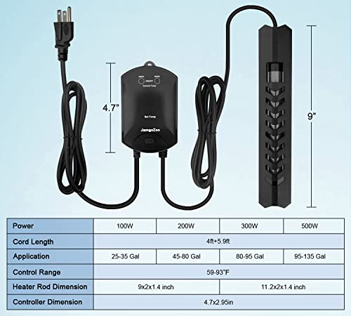 JamgoZoo Aquarium Heater with Thermostat: 100W/200W/300W/500W Fish Tank Heater | 100W Submersible Fresh & Saltwater…