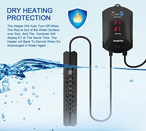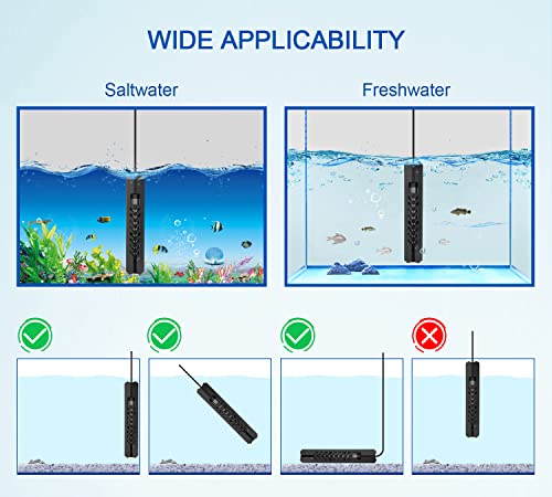 🐠【Safety Guarantee】- With anti-dry heating protection and overheating protection, when the water temperature exceeds 94℉, the adjustable aquarium heater will stop and alert. It will also stop when the water level is 5cm lower than the heater. Escorting your pet’s safety.