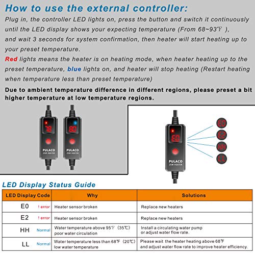 ★【Clever temperature management】: The heater successfully maintains the temperature you preset earlier than, and stops heating when the water temperature reaches the preset temperature, and restarts heating when the water temperature is decrease than the preset temperature by 2-3°F.The purple mild on the LED display signifies that the heater is heating, and the blue mild signifies that the heater has completed heating and is in a relentless temperature state.