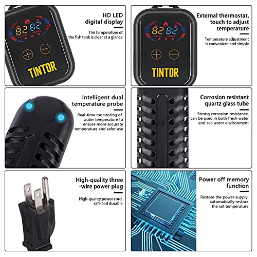 Why select Tintor aquarium heater to your fish tank? 1. It’s secure to make use of. When the water temperature exceeds 95°F, the digital aquarium heater will mechanically flip off. When the highest of the heater exceeds 0.8 inches, the aquarium heater will mechanically flip off. 2. It’s non-explosive, with excessive temperature resistant and environmentally pleasant plastic protect, and the heating aspect is high-quality and sturdy quartz tube, which can be utilized for recent water and salt water. 3. Power saving, built-in PID chip, in contrast with abnormal aquarium heater, vitality saving as much as 30%. 4. Digital show, you may test the water temperature at any time and set the temperature on the controller. It’s straightforward to set the temperature. There is just one setting button on the controller, and the temperature might be chosen from 68°F to 93°F by urgent this button.
