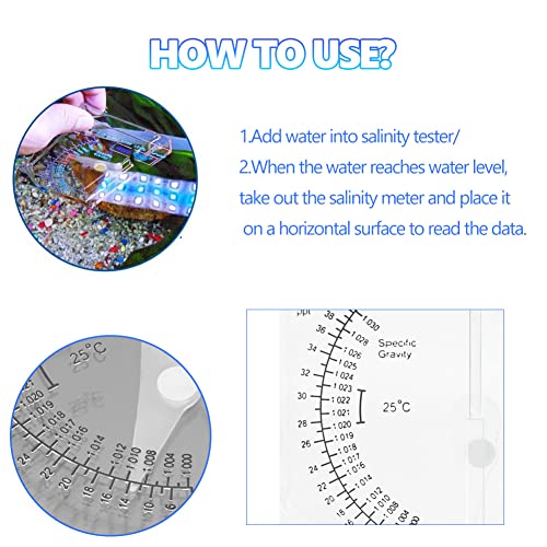 【Studying Scale】Primarily based on the inner studying of the dimensions, primarily based on the salinity of the horizontal scale (PPT). The advisable ratio of water in a tank is between 1,020 and 1,023 (secure vary). Rinse with water after every use.